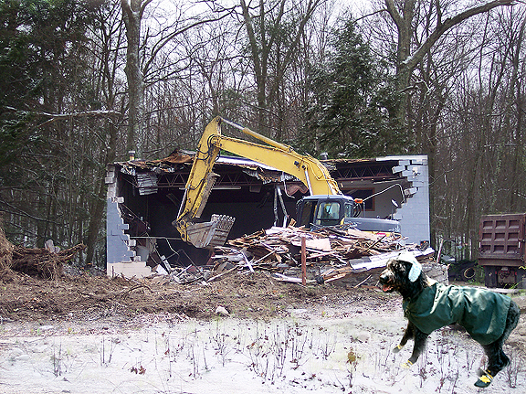Furlock watched Digger and the Dumptruck  chomp away at Bill's garage.