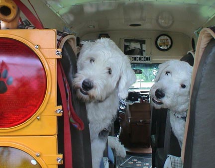Cricket and Miss molly Malone look right at home on the wigglebus,and wiggle must have a smile from bumper to bumper.They are so cute and seem to fit right in.They are two lucky girls to be living in the same house as the famous Henry.Best wishes to you all.