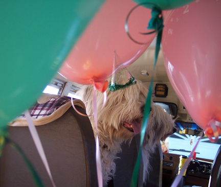 "PLEASE tell us what our gift is," begged the girls as they batted the birthday balloons out of their way.