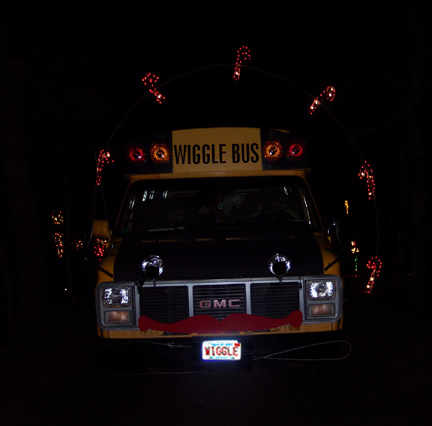 Next Wiggle drove through a tunnel of candy canes.