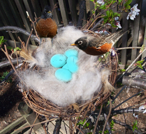 "If we sing and make too much noise cats or squirrels might try to steal our eggs.."