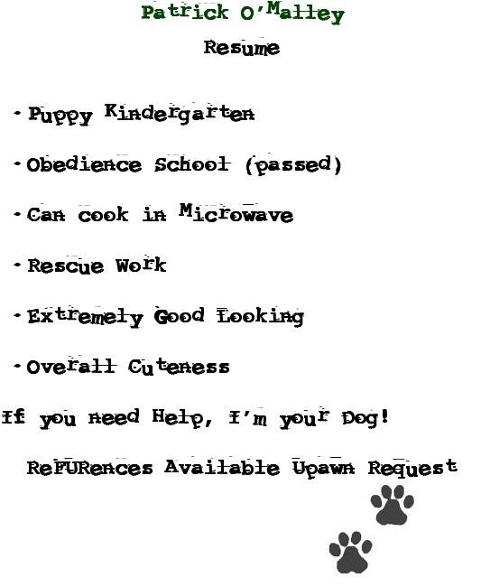 "You'll need a Pawfessional Resume," said Mr. Remington.  "Something that explains who you are, and why someone should hire you."