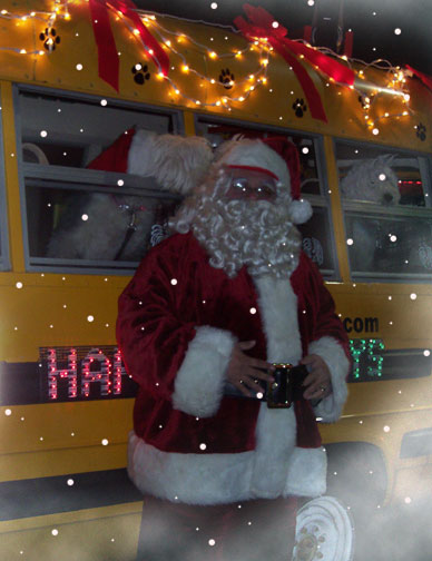The dogs wiggled their butts with happiness. They finally got to see Santa!