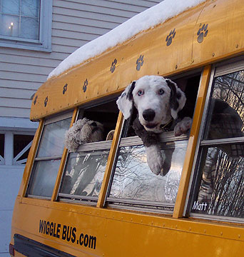 After they said goodbye to the tearful uprights, everyone jumped in to the WiggleBus to drive Hank to the pawphanage to be adopted..